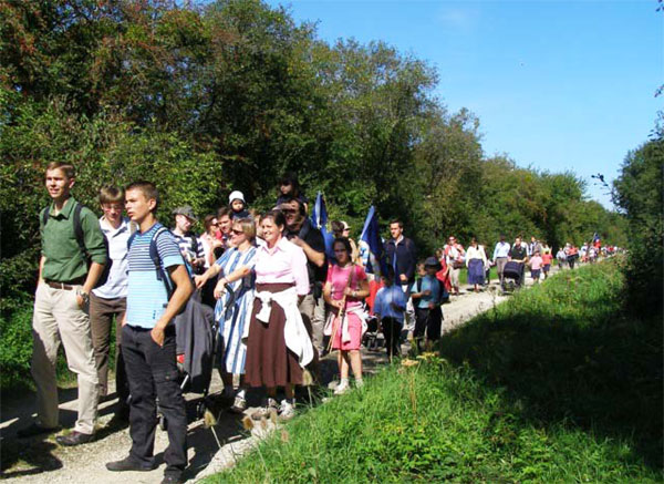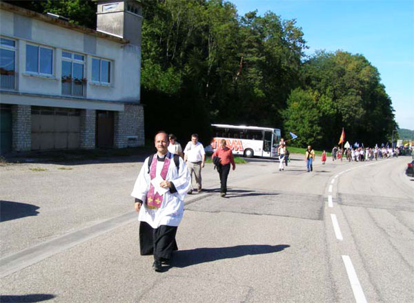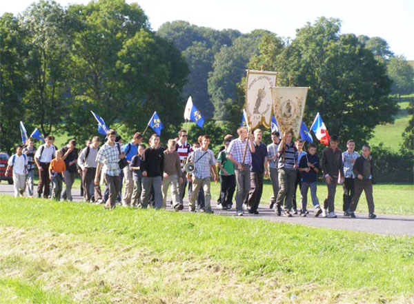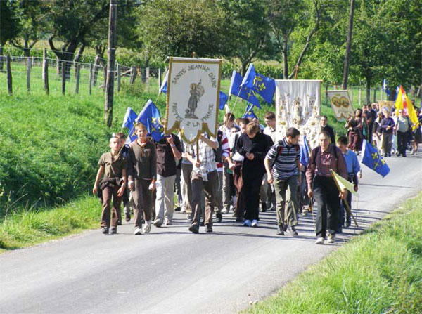 La Providence nous avait retenu un temps de toute beauté pour cette marche de quinze kilomètres autour de Domrémy. Sous un ciel azuréen, les pèlerins ont parcouru ces terres familières à notre sainte lorraine, ont pu méditer, chanter et prier avec le concours des garçons de l’Étoile du Matin, présents cette année.