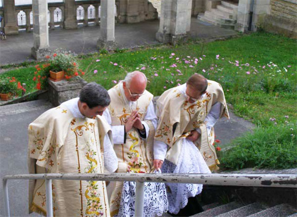 qu’entourent les abbés Turpault, diacre, et de Pluvié, sous-diacre,