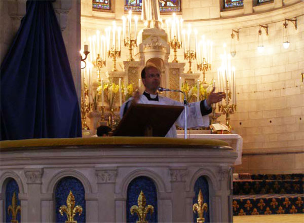 Nous ne devons désespérer de rien, « les hommes d’armes combattront, mais Dieu donnera la victoire. » Les chants et les morceaux de musique à l’orgue, accompagné de trompette, furent de grande qualité. Cela culmina lors de la procession de sortie, ouverte par la clochette et le pavillon basilical comme il se doit, quand les pèlerins accompagnés des grandes orgues et de la trompette, firent retentir toute la basilique d’un puissant « Étendard de la délivrance ».