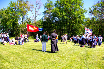 Là, quelques fidèles qui ne peuvent marcher se joignent à nous et peuvent méditer sur les buts de ce pèlerinage : l’esprit missionnaire et la Consécration de soi-même à Jésus-Christ par les mains de Marie selon la formule de Saint Louis-Marie Grignon de Monfort, à laquelle les fidèles se sont préparés tout au long du carême.