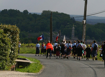 En tête marchent les Scouts, Louveteaux et Jeannettes, joyeusement accompagnés, et dont les méditations s’émaillent d’édifiantes histoires de la vie des Saints. Les enfants en redemandent !