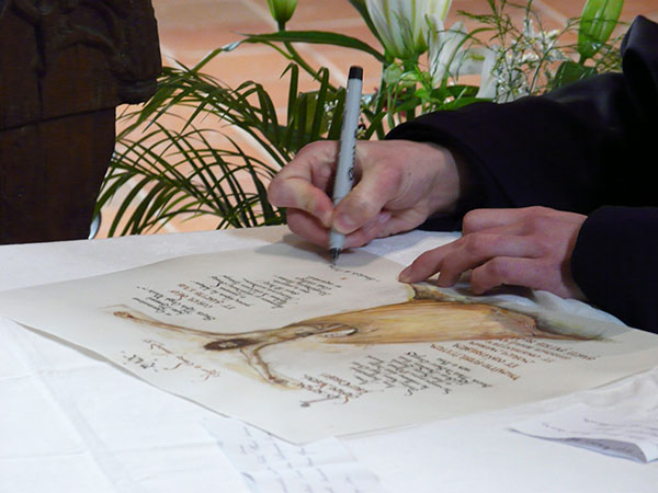 Au sein du cloître bénédictin, cette vie déjà céleste, que la couronne de fleurs représente au mieux, est la lumière même des Béatitudes de l’Évangile qui donne à tous l’assurance qu’en elles, qu’en nous, « la grâce n’a pas été vaine ».