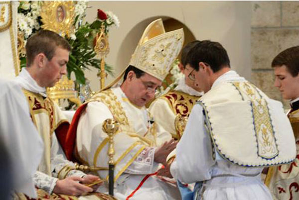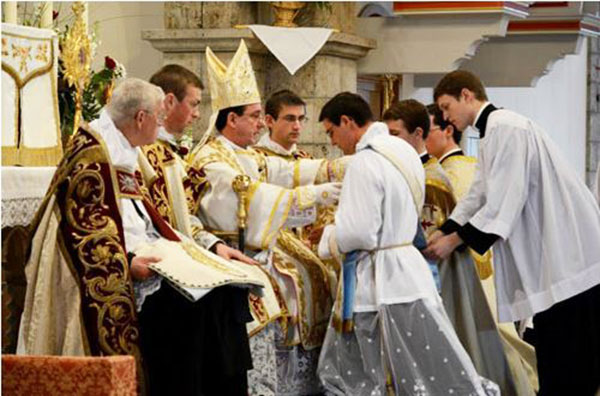 Samedi 22 février 2014, en la fête de la Chaire de saint Pierre, Mgr Alfonso de Galarreta, évêque auxiliaire de la Fraternité Sacerotale Saint-Pie X, a élevé au sacerdoce M. l’abbé Thibaud Favre qui avait été ordonné diacre le 28 juin 2013 au séminaire argentin de La Reja.