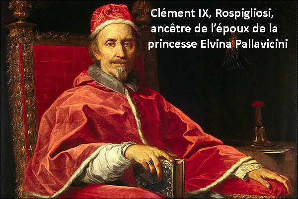 - Giulio Rospigliosi, (né à Pistoia le 27 ou 28 janvier 1600 – mort le 9 décembre 1669), pape Clément IX (en latin Clemens IX, en italien Clemente IX) du 20 juin 1667 au 9 décembre 1669. Élu le 26 juin 1667, il fut le médiateur dans les guerres de succession entre la France, l’Espagne, l’Angleterre et la Hollande par la paix d’Aix-la-Chapelle dite « Clémentine »[↩]