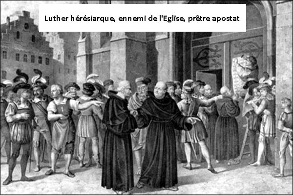 Des véri­tés fon­da­men­tales sont niées ou vidées de leur sens, on cherche l’ac­cord doc­tri­nal expli­cite avec les héré­tiques et les schis­ma­tiques, l’Autorité Suprême fait même ouver­te­ment l’é­loge des fon­de­ments mêmes de leurs doc­trines ! En effet, l’hé­ré­sie de la sola fides comme pour­voyeuse de salut, sans qu’il soit besoin du concours des œuvres méri­toires que Dieu veut de nous, avec l’o­béis­sance aux Dix Commandements, et donc avec la coopé­ra­tion de notre libre arbitre à l’œuvre de la Grâce en nous, consti­tue le prin­cipe fon­da­men­tal de tout le sys­tème luthé­rien et même de tout le Protestantisme.