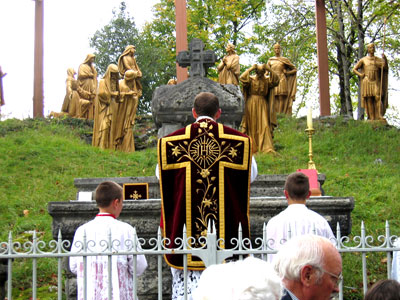 Un prêtre offre sa messe au pied du calvaire