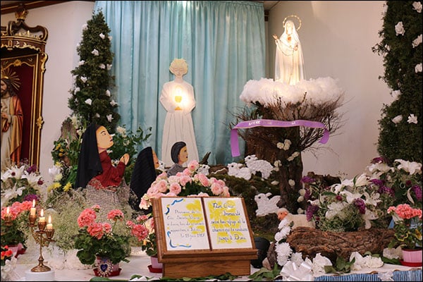Après la grand-messe, M. l’abbé Romanens renouvelle devant l’autel, l’acte de consécration du genre humain au Sacré-Cœur ; devant cette belle mise en scène de Fatima, avec tous les fidèles, il renouvelle ensuite la consécration de l’Oratoire Saint-Joseph au Cœur Immaculée de Marie, prononcée la première fois en l’an 2000. Durant l’Office du Rosaire le soir, M. l’abbé Carlhian renouvellera l’acte de consécration du genre humain au Cœur Immaculé de Marie.