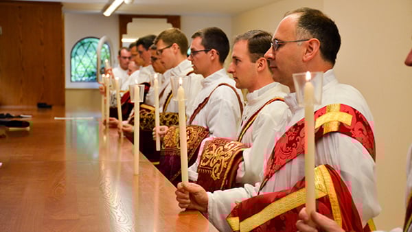 La cérémonie d’ordination sacerdotale déploie les fastes de la liturgie traditionnelle, à Ecône, ce 29 juin 2020.