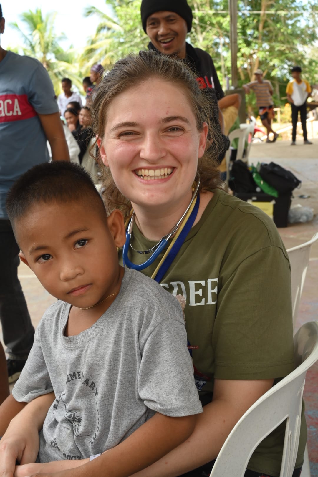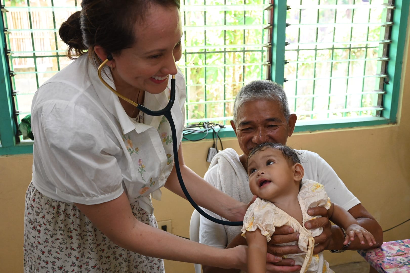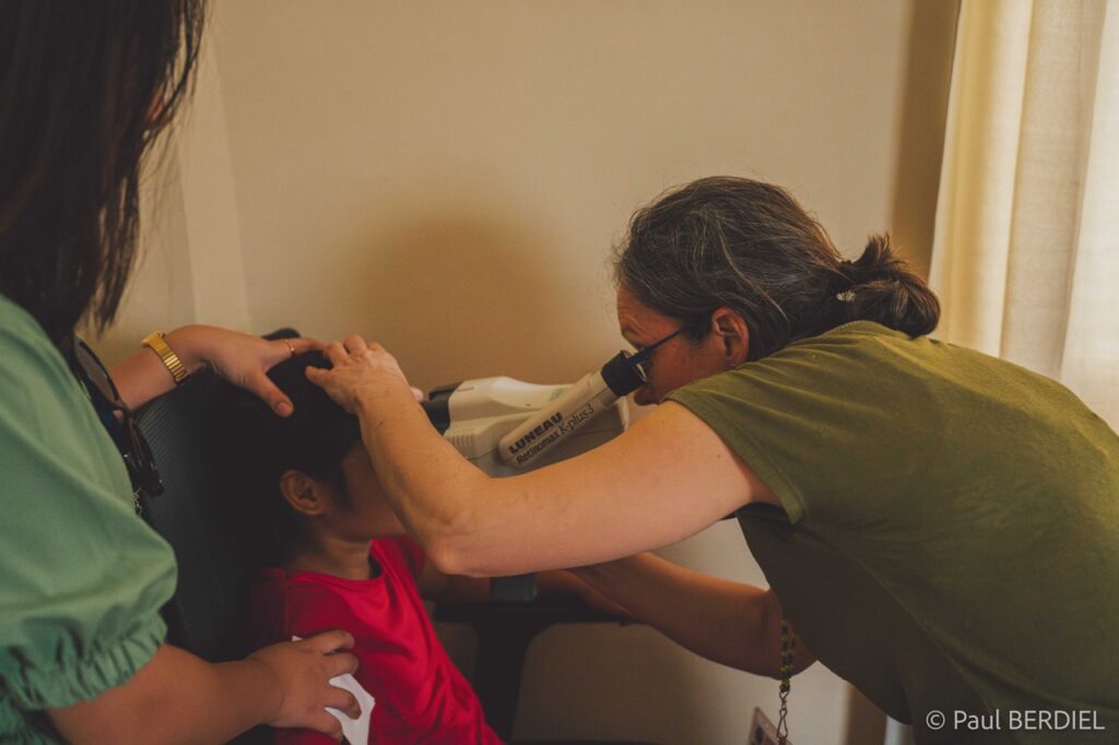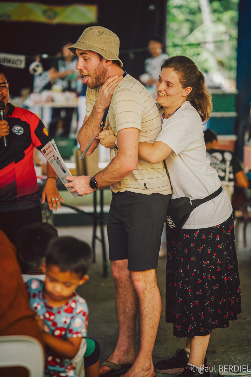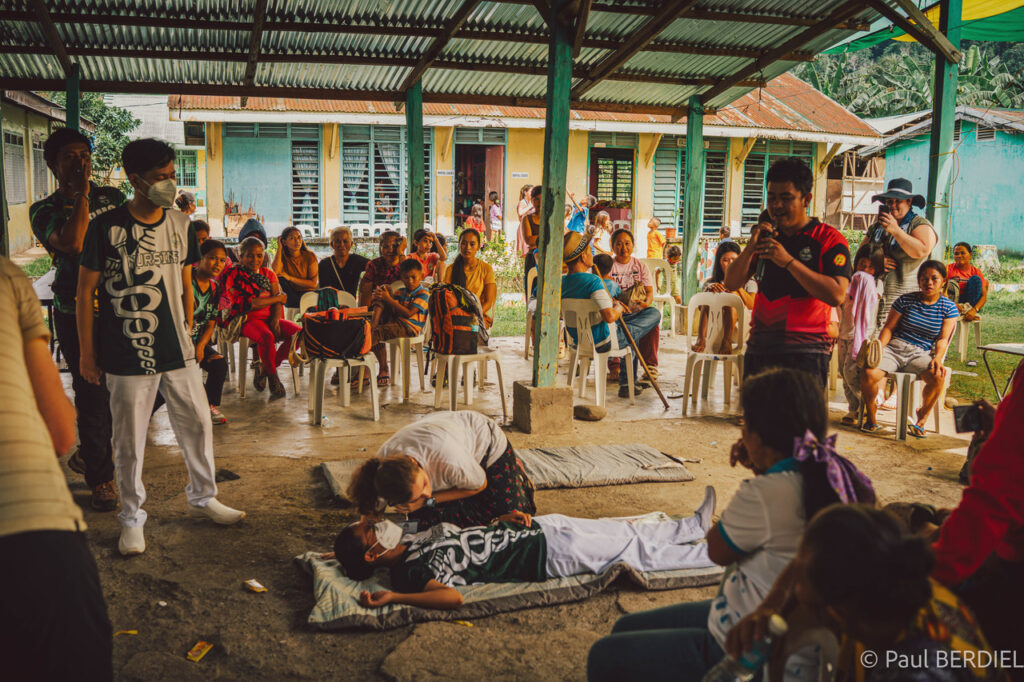 Ce lundi matin, la foule s’est rassemblée sous le hall municipal. Les habitants de Datal Anggas, mais aussi ceux de hameaux beaucoup plus éloignés — uniquement accessibles par des pistes ou des chemins de terre — viennent chercher consultations, médicaments, lunettes, petites chirurgies. Sept médecins étrangers — dont cinq généralistes, un radiologue muni d’un échographe et une pédiatre — se sont joints aux deux généralistes et aux dentistes locaux, ainsi qu’au Dr June Viray, pédiatre philippine et médecin-référent de la mission depuis ses débuts. Une deuxième opticienne est venue en renfort, permettant de distribuer plus rapidement les centaines de lunettes récupérées et acheminées dans les valises des bénévoles.