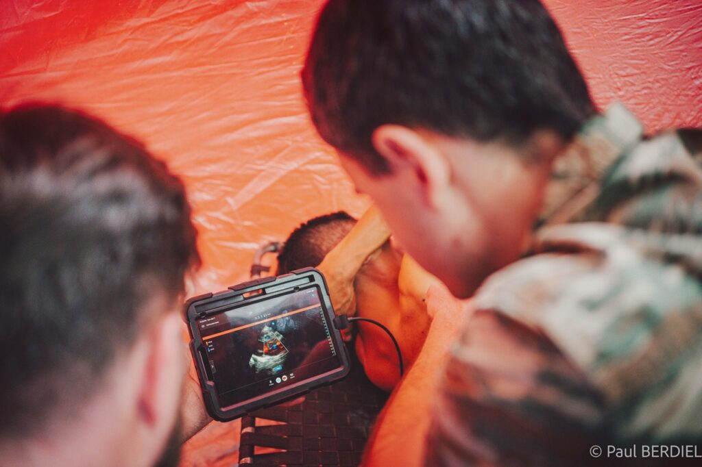 L’une de ces tentes abrite cette année le cabinet de radiologie de Christopher, radiologue américain à sa première mission. Il a apporté un appareil d’échographie portable qui permet aux généralistes d’obtenir sur place des images diagnostiques. Il nous a livré un beau témoignage : « Converti depuis peu et confirmé en janvier 2026, je mesure chaque jour davantage ce que signifie véritablement être un soldat du Christ. Les bénévoles de Rosa Mystica, animés d’une foi vivante et d’un amour profond pour Notre Seigneur, donnent corps à ce que veut dire vivre en chrétien — non pas en paroles, mais en actes. Avec pour seul outil un échographe portable, j’ai eu le privilège de travailler aux côtés d’autres médecins pour contribuer au diagnostic, guider les décisions thérapeutiques et assurer le suivi des patients. Après presqu’une décennie passée à interpréter des échographies, je ne cesse de m’étonner de la puissance de cette technique, si précieuse là où les moyens font défaut. Je dois enfin rendre hommage à ma femme Paola, sans qui je n’aurais pas pris le chemin de cette mission. Pouvoir unir enfin nos savoirs et nos talents dans un même élan est un don rare, d’une profondeur que les mots peinent à traduire. »