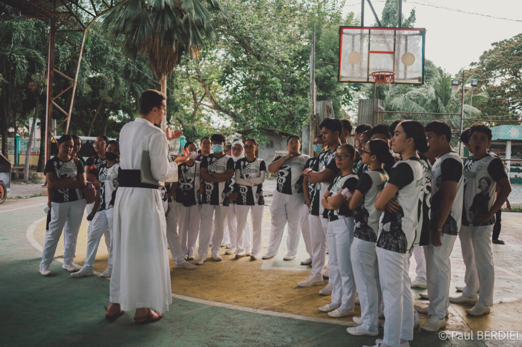 Ce mardi, l’abbé Timothy Pfeiffer — Father Tim —, aumônier de la mission, et l’abbé Fillebeen, s’attaquent au « monstre sacré qui dévore la population philippine ». Une classe d’élèves infirmières de l’Université Notre Dame de Dadiangas, venue comme chaque année prêter main-forte à la mission, a pu entendre quelques principes de morale naturelle de la bouche des abbés. Des dépliants d’éthique médicale leur ont été distribués et expliqués.