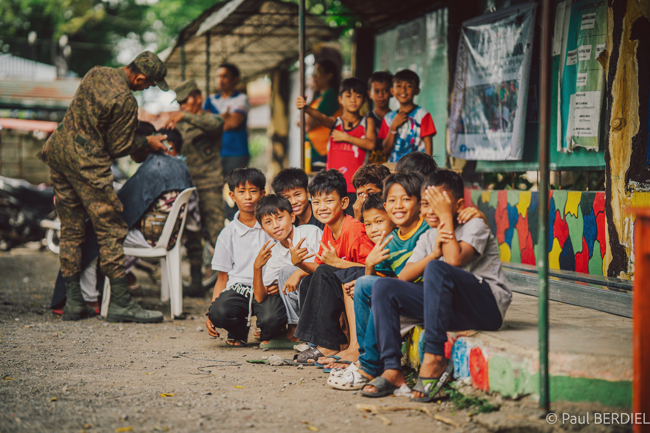 Cette aventure serait difficilement réalisable sans le soutien des autorités civiles. La municipalité d’Alabel, sur le territoire de laquelle opère la mission, met son personnel municipal (vingt-trois personnes), son matériel — tentes, camions-bennes — et sa police au service de la mission. L’armée philippine détache également un petit peloton de soldats pour veiller à la sécurité des volontaires dans ce territoire en voie de pacification. Le maire d’Alabel — qui avait fait consacrer sa circonscription et ses habitants au Cœur Immaculé de Marie en 2016 — offre chaque année un somptueux Thanksgiving Dinner à tous les participants, avec distribution traditionnelle de centaines de certificates of appreciation, spectacle folklorique et animations joyeuses. Cette année, ce dîner s’est tenu dans le bâtiment même de la mairie, imposant immeuble tout neuf, témoin d’un progrès certain de l’administration civile dans ces régions si longtemps livrées à elles-mêmes.