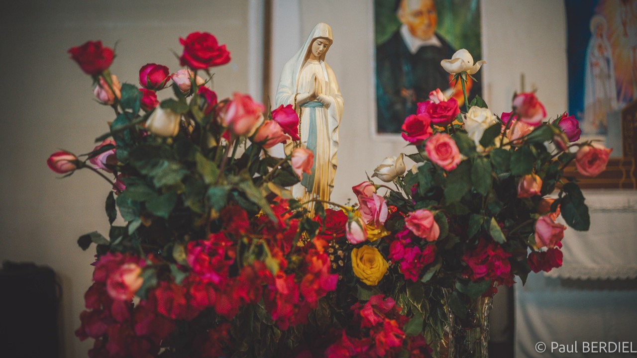Ils ont chan­té leurs Ave Maria une rose à la main, roses offertes par les patients de la mis­sion de l’an der­nier, qu’ils ont tous dépo­sées avec émo­tion aux pieds de la Rose Mystique dont ils tâche­ront d’être les ser­vi­teurs fidèles tout au long de ces six jours de mis­sion auprès des plus pauvres.
