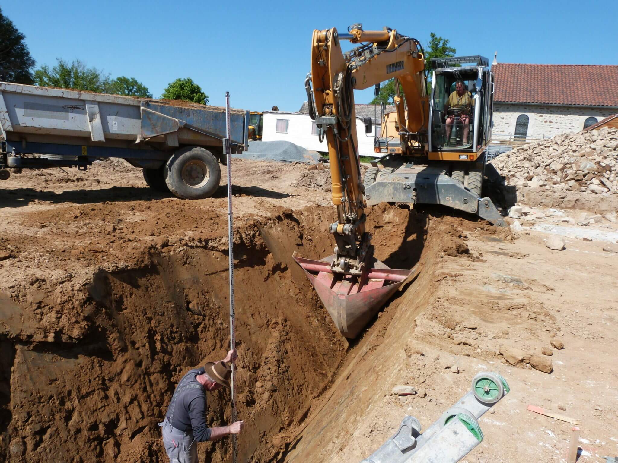 Le maître maçon revient à la méthode ancestrale des fondations « romaines », plus économique que la construction industrielle.