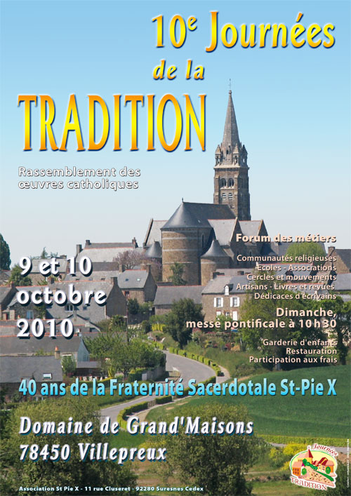 Nombreux stands : Les com­mu­nau­tés reli­gieuses de la Tradition et de très nom­breux arti­sans et artistes… Parmi les pre­miers ins­crits : Civitas, MJCF, SOS Tout Petits, ACIM, Scouts, Librairies, etc.