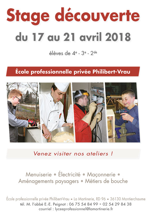 17 au 21 avril 2018 : stage découverte à l’école professionnelle privée Philibert Vrau dans l’Indre (36)