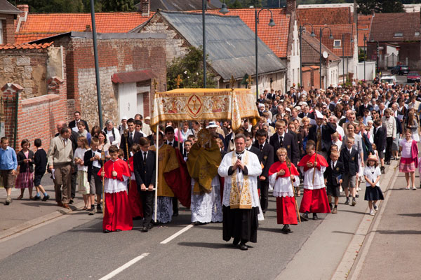 Fête-Dieu dans les rues de Camblain (62) où la FSSPX possède une école