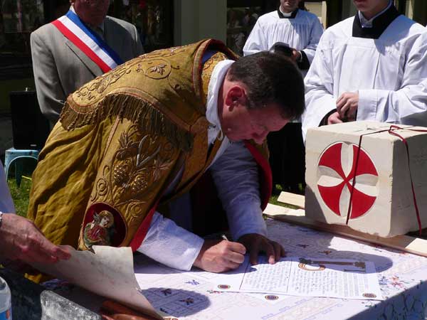 Dimanche 26 juin 2011, en la solennité de la Fête-Dieu, Monsieur l’abbé Alain-Marc Nély, second assistant du Supérieur général, bénissait la première pierre de la chapelle de l’école Saint-Jean-Baptiste de La Salle (Pas-de-Calais). Cette chapelle sera dédiée à Notre-Dame de l’Etoile. L’école a été fondée en 1991 par la Fraternité Saint Pie X. Cette bénédiction solennelle coïncidait avec la célébration des 20 ans de fondation.