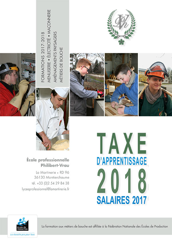 En remplissant cette obligation fiscale à notre profit, vous devenez un partenaire actif de l’enseignement technique privé. Transmettez à votre OCTA votre volonté d’attribuer à notre établissement votre taxe d’apprentissage en précisant « je souhaite affecter le maximum de ma taxe d’apprentissage à l’École professionnelle Philibert-Vrau – code UAI 0360860P ». Cette mention ne détourne pas la plus grande partie de votre impôt et vous permet encore d’en faire bénéficier d’autres établissements puisque nous ne pouvons recevoir que 5,98% de la base brut de votre masse salariale.