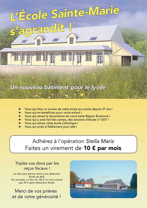 Mais il reste à financer ce projet, ce qui est une autre affaire. Nous comptons sur Saint Joseph ainsi que sur la générosité et la prière de nos bienfaiteurs.