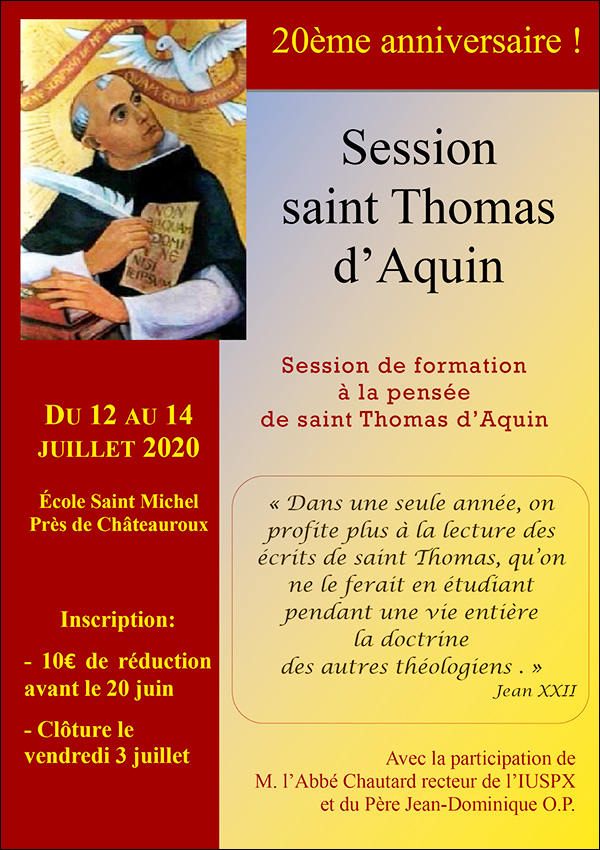 Comme chaque année l’Association Saint Thomas organise sa session de philosophie. En trois jours, trois problèmes contemporains sont abordés, leurs causes, leurs remèdes par un retour à la philosophie réaliste, et une réflexion à la lumière de la Révélation pour approfondir la question.