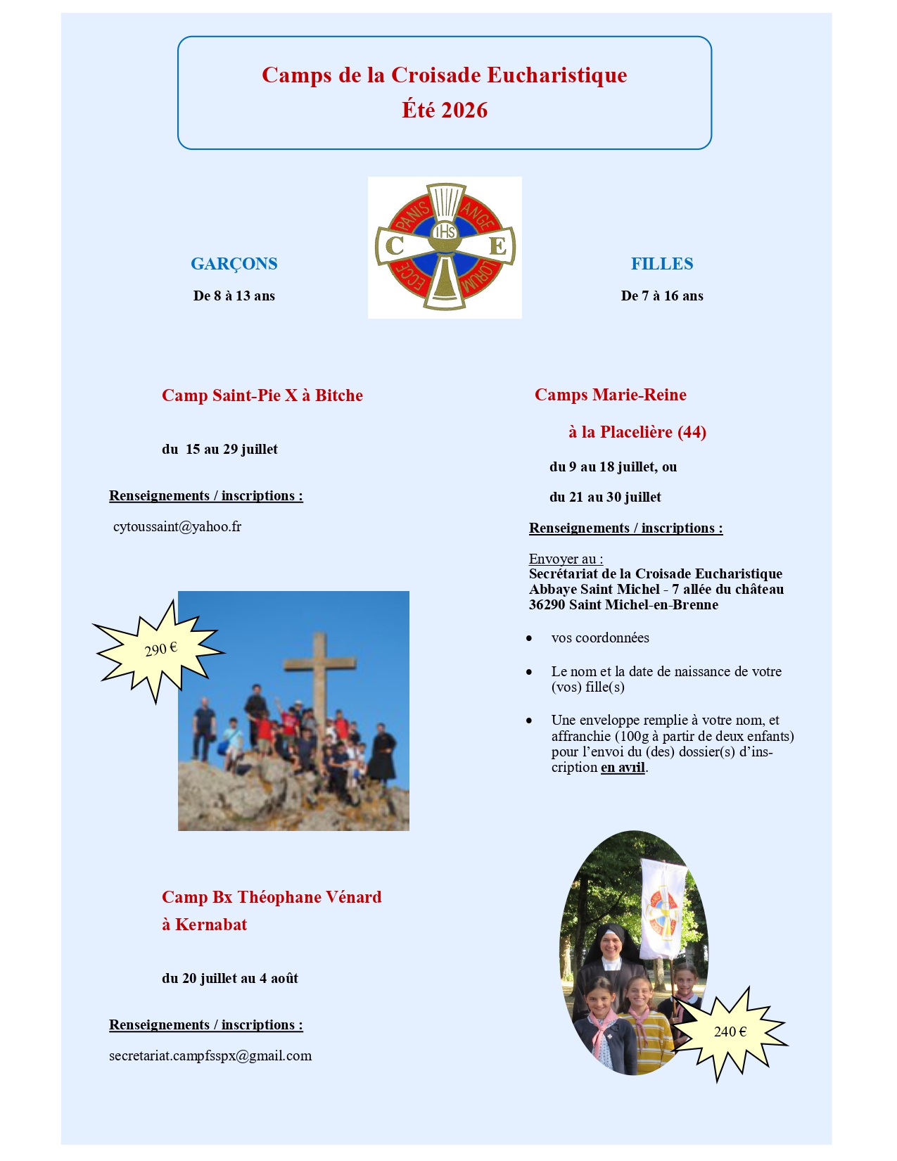 Camps de la Croisade Eucharistique – Été 2026