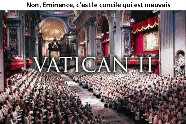 Non, Eminence, c’est le concile qui est mauvais. Nous sommes et demeurons catholiques par l’adhésion à la foi catholique, et rien ne doit nous faire abandonner cette foi, notre salut éternel en dépend.