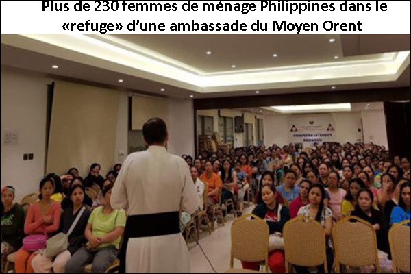 Tout cela explique pourquoi toute une aile de l’Ambassade de Philippines est un devenu un « refuge » pour les domestiques qui ont fui leur employeur et qui ne peuvent pas quitter le pays. Lorsque l’abbé Wailliez a visité l’abri, il s’y trouvait environ 400 femmes de ménage ! Il a reçu environ 30 d’entre elles pour de la direction spirituelle et des confessions. Leur histoire est souvent identique. Elles ont quitté les Philippines pour payer les frais de scolarité de leurs enfants. Elles ont envoyé au pays la plupart de leurs revenus et n’ont gardé quasiment rien pour elles-mêmes. Elles se sentent extrêmement fragiles. En vérité, Ce qui est très déchirant c’est que leur générosité (mal orientée) a souvent conduit leur mari à l’infidélité, parfois aussi à la leur, et à une famille brisée. Les enfants sont éloignés de leur mère et leur sacrifice semble avoir été inutile ou même très néfaste pour toute la famille.