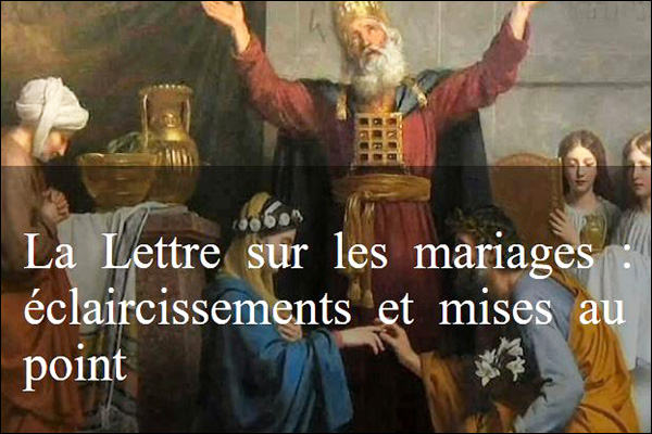 La première solution (consentement reçu par le curé dans son église) est assez courante lorsque le mariage a lieu dans une église paroissiale. La deuxième solution (consentement reçu par un prêtre de la Fraternité Saint-Pie X dans une église) existe déjà dans de rares cas, quand un curé courageux donne délégation, et son élargissement serait un grand bienfait pour tous les mariages célébrés dans une église paroissiale. La troisième solution (consentement reçu par un prêtre de la Fraternité Saint-Pie X dans sa chapelle) serait la plus cohérente, la meilleure et la plus sage : l’orientation générale des choses, depuis la publication de la Lettre du cardinal Müller, semble nettement y incliner (trois évêques en France, par exemple, ont déjà tranché en ce sens). La quatrième solution (consentement reçu par un prêtre « officiel » dans une chapelle de la Fraternité Saint-Pie X) est, de loin, la plus problématique, et ne pourrait être éventuellement acceptable qu’avec des conditions très strictes pour conserver au mariage célébré son caractère pleinement catholique et traditionnel.