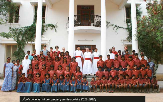L’École de la Vérité (Veritas academy) a été déplacée à trois reprises depuis lors et elle termine l’année scolaire 2011- 2012 avec cinquante-neuf élèves, dans une propriété louée, à mi-distance entre le prieuré et l’orphelinat des filles. On a déjà acheté un terrain définitif de taille suffisante pour y installer cette œuvre, mais les signes de la Providence montrant la direction à prendre ne sont pas encore suffisants pour faire appel à nouveau à des entreprises de construction.