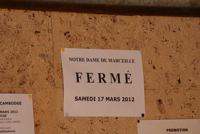 Voici un an, Monseigneur Planet, évêque de Carcassonne, dans un grand élan de charité et de sollicitude apostolique, nous fermait l’accès au sanctuaire de Notre-Dame de Marceille. Il prétendait même, par voie de courrier recommandé, nous interdire jusqu’à l’accès du domaine de la basilique Notre-Dame de Marceille, pourtant ouvert 365 jours par an au public, comme n’importe qui peut le constater en se rendant sur les lieux.