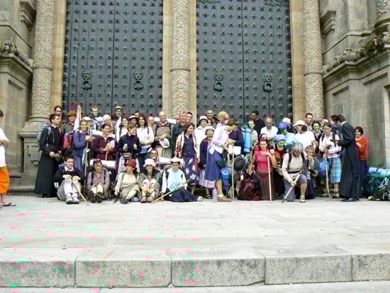 Photo du groupe 2006 devant la grande porte de la cathédrale de Compostelle
