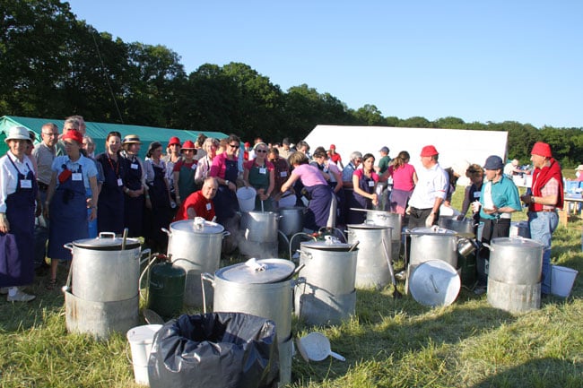 25 000 bouteilles d’eau consommées, soit 37 palettes, transportées par un porteur 19 tonnes à grue et six fourgons 12 m³, dont trois pour les enfants.