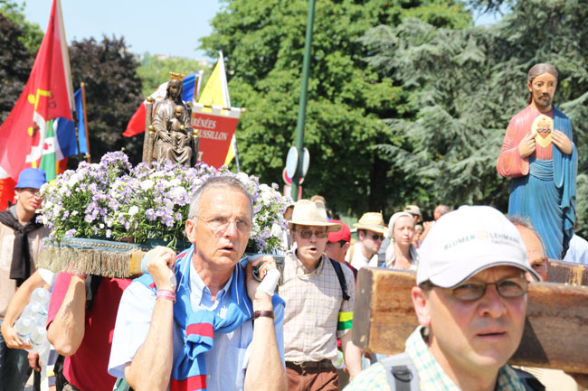 Les fenêtres s’entrouvrent, les franciliens penchent la tête à leur balcon. Les plus jeunes des pèlerins ont bien conscience de se montrer exemplaires. Leur foi et leur joie ne peuvent laisser indifférents les cœurs.
