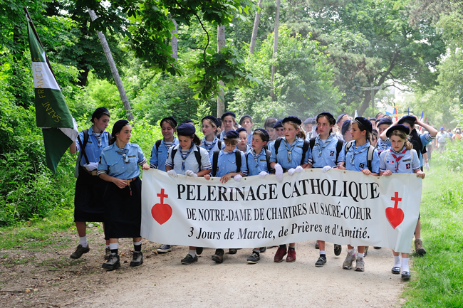 Les fenêtres s’entrouvrent, les franciliens penchent la tête à leur balcon. Les plus jeunes des pèlerins ont bien conscience de se montrer exemplaires. Leur foi et leur joie ne peuvent laisser indifférents les cœurs.