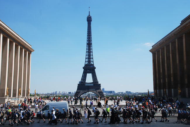 Le symbole « touristique » de Paris se dresse derrière les pèlerins