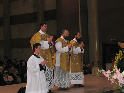 diacre : Abbé Erik Briols, sous-Diacre : Père François, Capucin de Morgon.