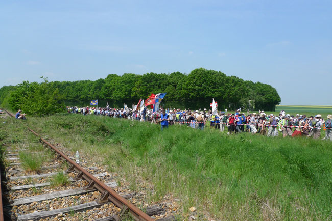 Les pèlerins ont quitté Chartres et entament la longue marche de plus de 100 km qui va les mener jusqu’à la place Vauban à Paris.