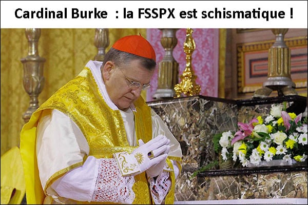 Cette déclaration a tellement fait l’effet d’une bombe que notre confrère d’akacatholic.com titre, en anglais, « Cardinal Burke slams FSSPX », c’est-à-dire littéralement « le cardinal Burke descend la FSSPX » !