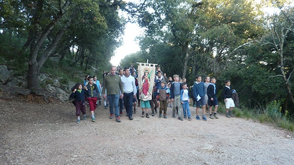 Le chapelet achevé, prêtres et pèlerins prirent en chantant et en priant le chemin malaisé (3,5 km) conduisant au sanctuaire de Saint-Joseph au Mont Bessillon. C’est sur ce mont que saint Joseph apparut au berger Bernard Picard, en 1660, et y fit jaillir une source, toujours active, pour le pauvre homme assoiffé.