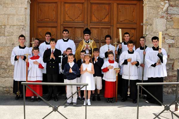 Dans l’église Saint-Jean des Cordeliers, magnifiquement restaurée par l’abbé François de Champeaux, l’abbé Jean-Marie Salaün, prieur, est heureux en ce dimanche 26 juin 2011 de voir grandir ces enfants dans la voie de la sanctification. Doublement heureux d’ailleurs, car il a pu annoncer l’ouverture, pour le mois de septembre, de l’école Sainte-Jeanne d’Arc à Bergerac.
