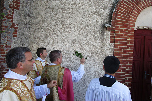 Après la bénédiction la messe solennelle a été célébrée par M. l’abbé Bouchacourt assisté de M. l’abbé Lionel Héry, Prieur du prieuré Saint-Martin de Tours-Avertin, qui faisait office de diacre, et de M. l’abbé Loïc verschuur, desservant de la nouvelle chapelle, qui faisiat office de sous-diacre. On notait aussi la présence de Messieurs les abbés Benoît Knittel, collaborateur à Tours, Gérard Herrbach, en poste en Suisse, et du R.P. Maximilien, O.F.M., capucin du couvent de Pontchardon.