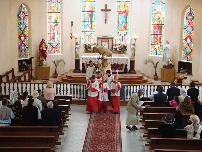 La Saint Sacrement, porté par l’abbé Jehan de Pluvié, sortant de la chapelle Sainte-Anne de Vannes (56)