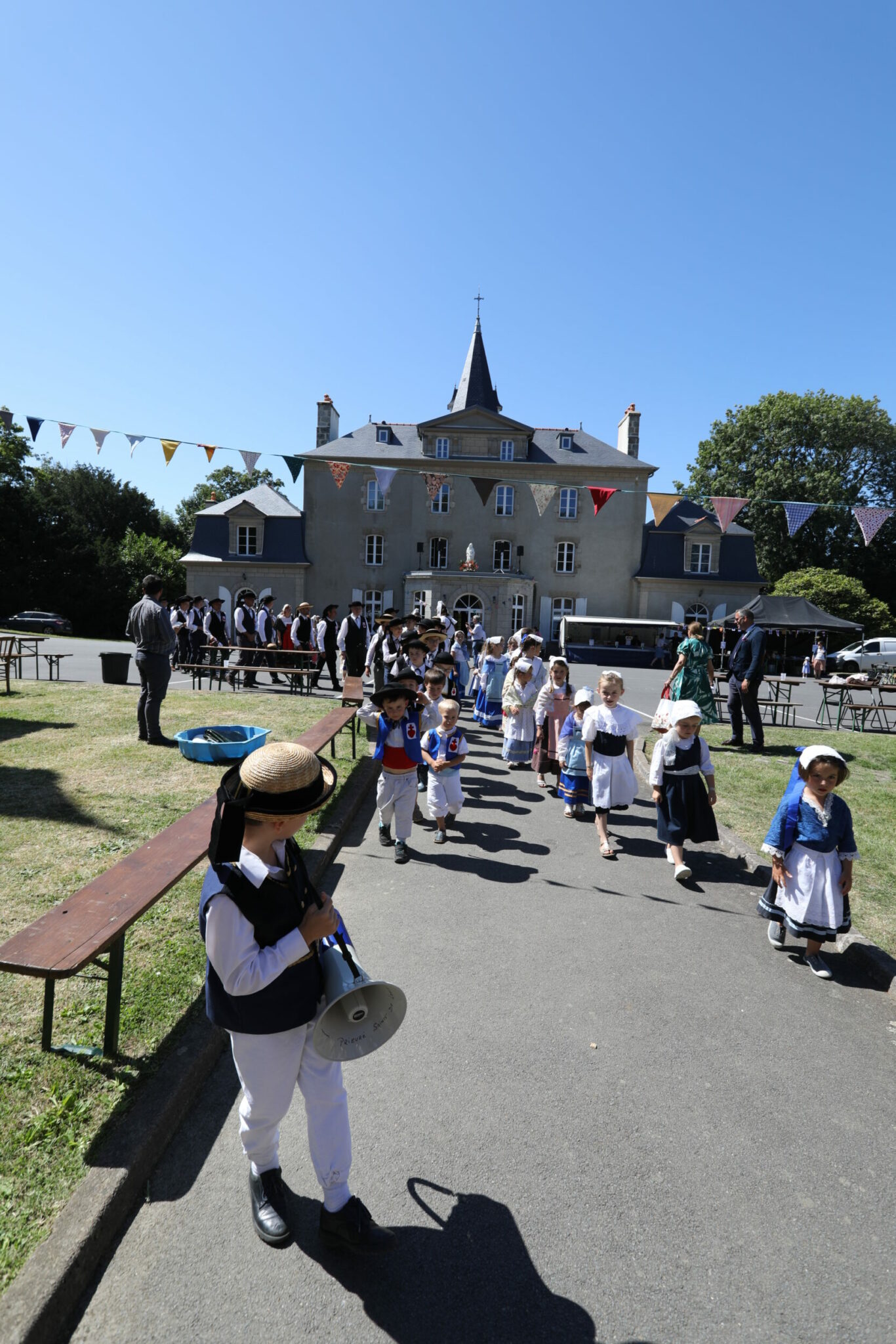 Dimanche 28 juillet, le prieuré Sainte-Anne de Lanvallay a solennisé sa sainte patronne. L’après-midi, les fidèles participèrent au Pardon de Sainte Anne consistant en une cérémonie incluant les vêpres de sainte Anne, une procession avec une relique et une statue de la mère de la Vierge Marie ainsi qu’un salut du Saint-Sacrement. Le nombre des fidèles costumés était plus important que l’année précédente puisque 140 personnes s’adressèrent à Madame de Charette pour revêtir l’habit breton sans compter ceux qui avaient apporté leur propre costume. La ferveur était palpable pendant la consécration des fidèles à sainte Anne et pendant la prière des mamans.