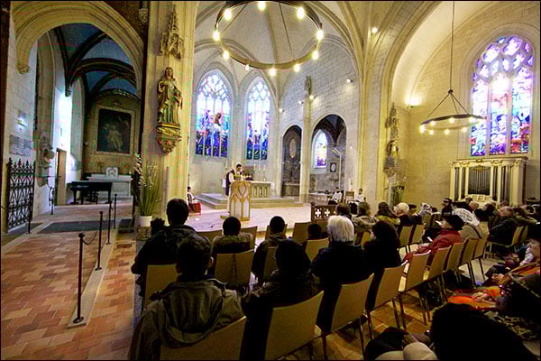 La messe dominicale dans la chapelle de l’Immaculée Conception prêtée par le diocèse à la FSSPX