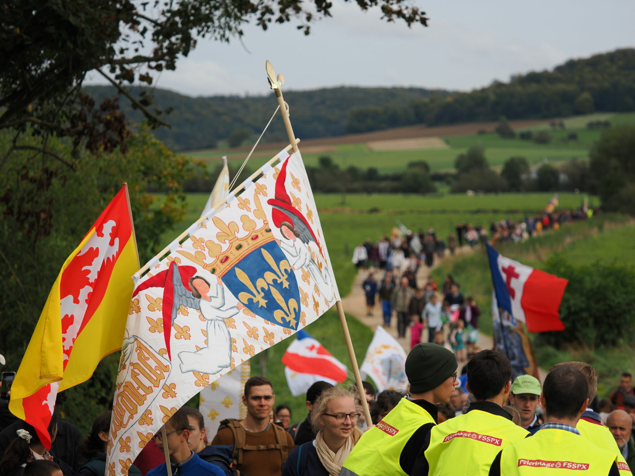 Les chapitres de nombreux pèlerins regroupés par région ou chapelle d’origine sont accompagnés de deux chapitres de scouts et de deux chapitres d’élèves de l’Etoile-du-Matin.