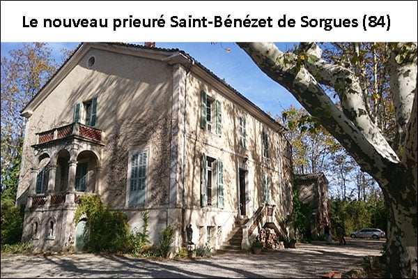 Après des années d’apostolat en Avignon et dans le Vaucluse assuré par les prêtres du Prieuré saint Férreol de Marseille et principalement par Monsieur l’abbé Etienne Beauvais, un Prieuré s’est ouvert, cet été, à Sorgues, afin de continuer la desserte de la chapelle des Pénitents noirs mise à la disposition de la Fraternité Saint-Pie X depuis 1996.