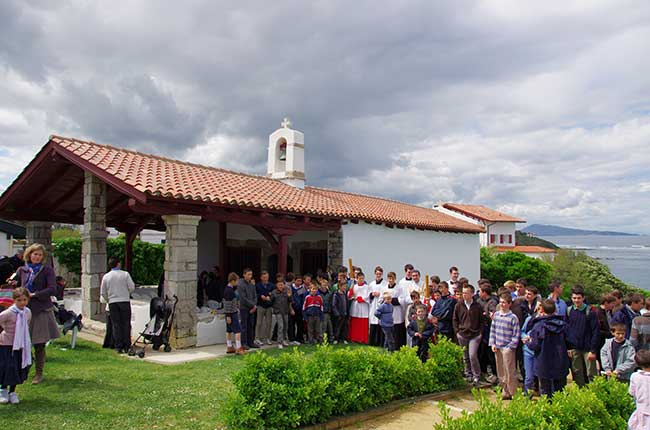 Les fidèles se sont lancés ensuite pour 8 km de marche, par un chemin côtier alternant criques et falaises… vraiment que le Bon Dieu est bon et puissant dans sa création ! Le but fut atteint : une autre chapelle dédiée à Saint Joseph située au somment de la ville de Saint-Jean de Luz où les vêpres furent chantées pour clôturer ce très beau pèlerinage.