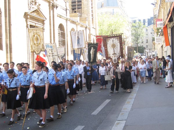 organisée par la paroisse Saint-Nicolas-du-Chardonnet dans les rues du Quartier latin à Paris
