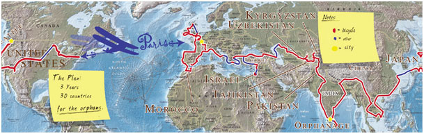 Pour des anecdotes, photos, statistiques de roulage, et tous les détails pratiques du périple, visitez : www.orphanride.org